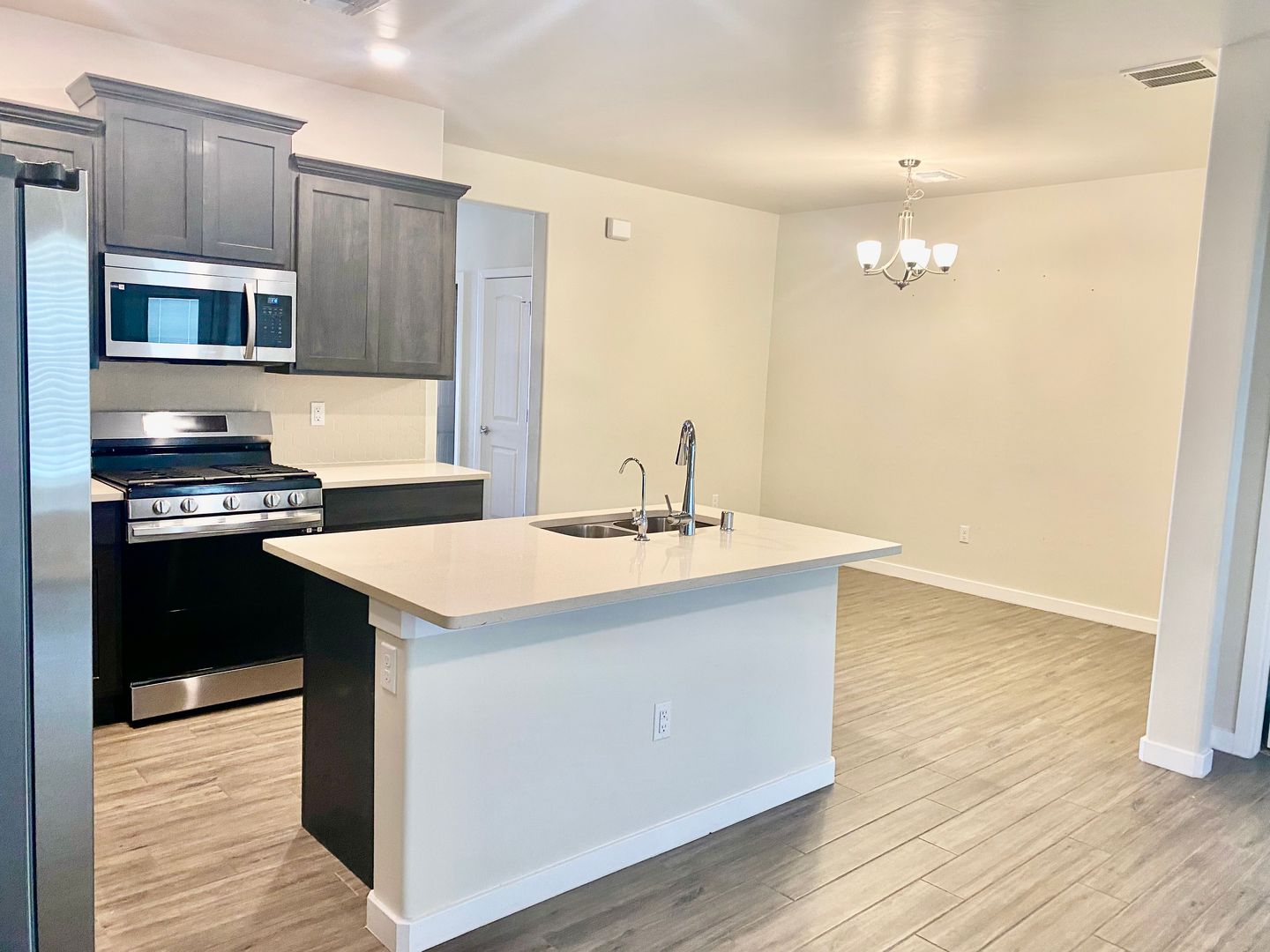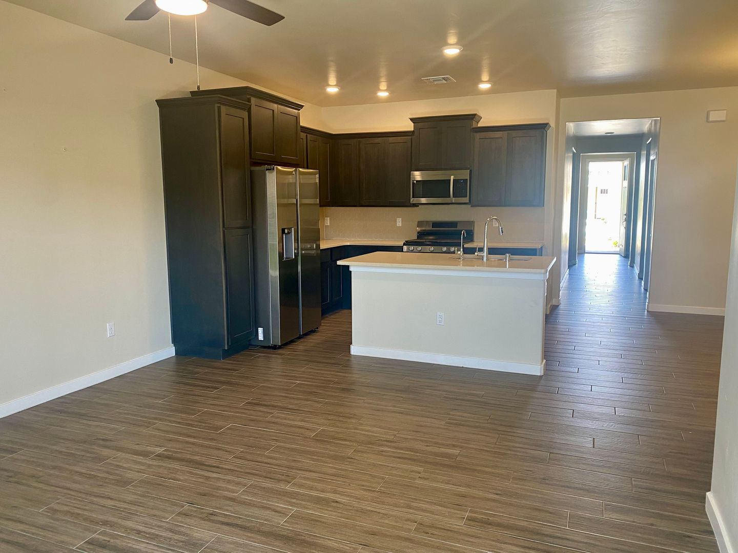 Welcome to your next home, a modern masterpiece built in 2023. This elegant rental property boasts four spacious bedrooms and three bathrooms. The kitchen is equipped with high-end stainless steel appliances and sleek quartz countertops, perfect for cooking enthusiasts and entertainers alike. Step outside to the covered patio, ideal for dining in the fresh air and enjoying the outdoors, with the benefit of full low-maintenance landscaping that keeps the yard looking pristine without the effort. The property also features a large 2-car garage, offering plenty of space for parking and storage.